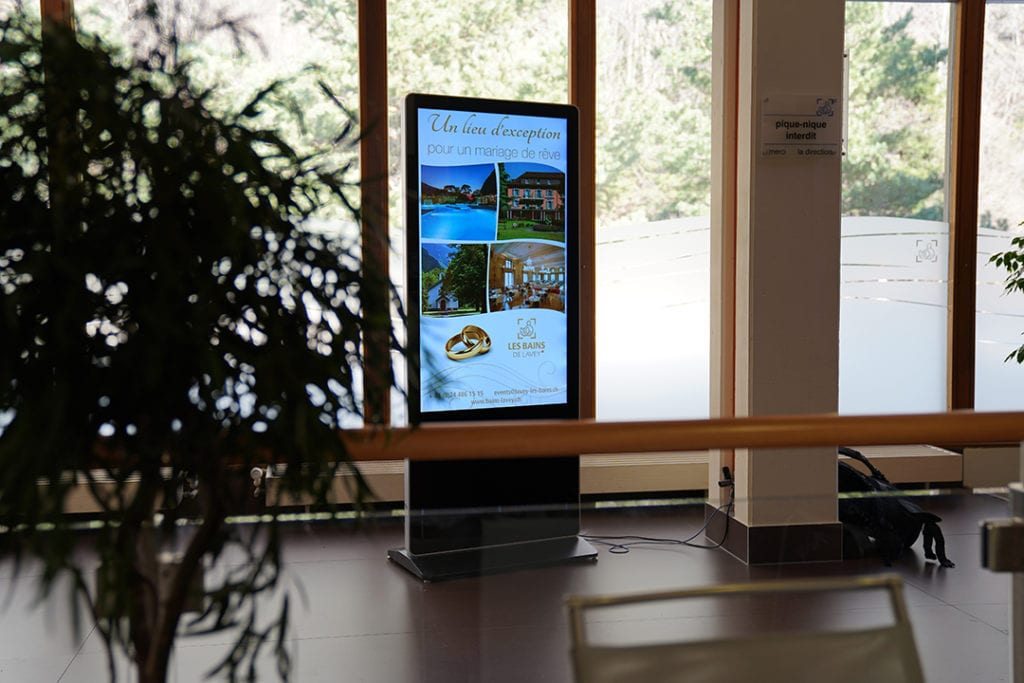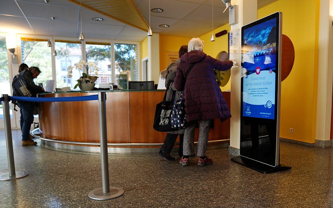 Exprimant la volonté d’optimiser la communication au sujet des informations pratiques, des services proposés et des offres en cours, le centre thermal de Lavey-les-Bains a fait appel à notre expertise. Ensemble, nous avons opté pour l’installation d’une paire de totems.