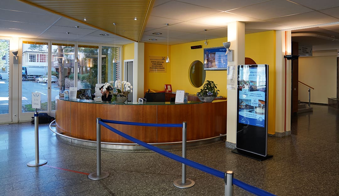 Les Bains de Lavey souhaitaient optimiser la communication autour des informations pratiques, des services proposés et des offres en cours. Le choix s’est porté sur des totems verticaux, plus visibles et plus engageants dans un lieu d’accueil à fort passage.